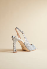 A quintessential pump all wrapped up in Glitter, just in time for the Holidays. Easy to wear, even easier to love. Embellished with a Swarovski Crystal buckle.