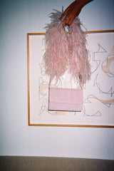 The Lijadu Bird Bag presented in soft Candy Floss Suede.