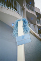The Lijadu Bird Bag presented this season in dreamy Blue Suede.
