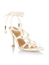 The Shoreline Sandal in Ivory with knotted leather and embellished with sea shells for those summer vacations.