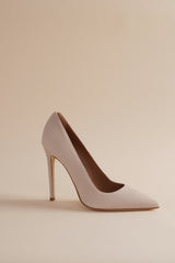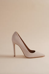 Heeled Pump rendered in suede. Heel height is 4 inches.