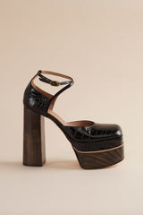 Disco Mary Jane Platform in Espresso Faux Croc