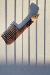 A wide toothed comb that is hand carved in Kenya and adorned with a beautiful shell that is found along its shores. Each one is unique and special, just like you.